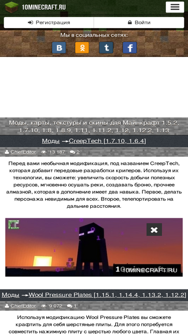 85%здесь тебя ждут свежие новости мира майнкрафт, а также моды, сиды, карты, текстуры, сборки и многое другое для игры minecraft ? заходи на сайт!