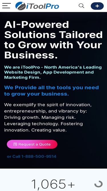 Hi! We are iToolPro! iToolPro helps get your business noticed and generate exceptional results. Schedule a Call or Call 1-888-500-9514 + Clients + Websites Developed + Websites Optimized + Apps Developed iToolPro! About iToolPro We are a professional website design and development firm that builds and designs custom web and mobile applications. iToolPro helps get […]