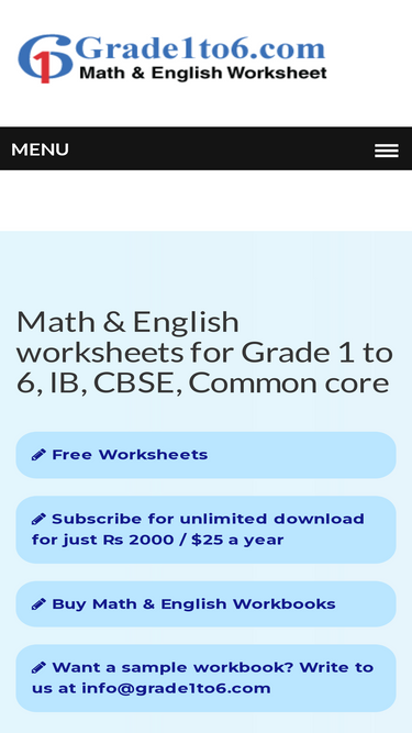 93%Grade1to6.com is for free printable Math and English worksheets and workbooks, aligned with PYP( IB ), CBSE, NCERT, Common core and more. Subscribe now Grade1to6