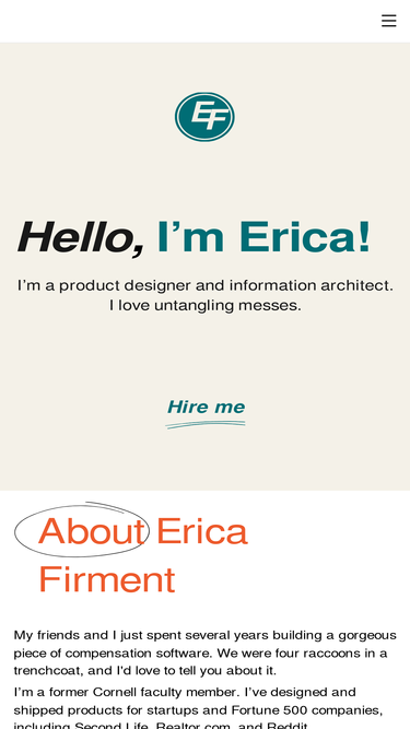 91%portfolio for product designer erica firment - formerly @ reddit, second life, cornell, compaas