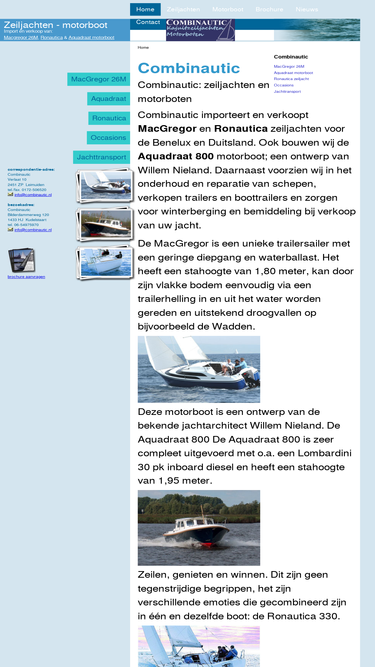 combinautic importeert en verkoopt macgregor, haber en ronautica zeiljachten voor de benelux en duitsland. de macgregor is een unieke trailersailer met een geringe diepgang en waterballast. daarnaast voorzien wij in het onderhoud en reparatie van schepen, verkopen trailers en boottrailers en zorgen voor winterberging en bemiddeling bij verkoop van uw jacht.