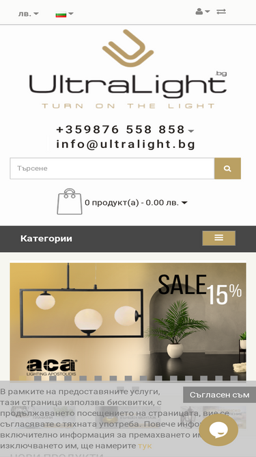 82%Ultralight.bg е български онлайн магазин, с богата гама от осветителни тела и аксесоари за дома, офиса и градината. Най-добрия избор на продукти, качествено обслужване и най-ниска цена.