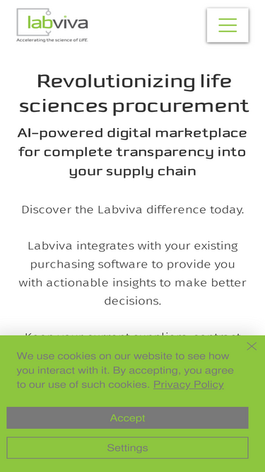 85%Labviva empowers life sciences professionals with the visibility, context, and control they need throughout the research procurement life cycle.