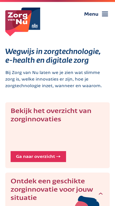 74%Als wijkverpleegkundige of thuiszorgmedewerker kom je vaak bij de mensen thuis. Maar je komt wel eens handen en tijd te kort. Er zijn zorginnovaties waarmee je werk makkelijker kan worden. En het leven van je cliënt een beetje aangenamer maken. Door technologie of een slim hulpmiddel kan een cliënt sommige dingen zelf doen en dit vergroot het gevoel van eigenwaarde.