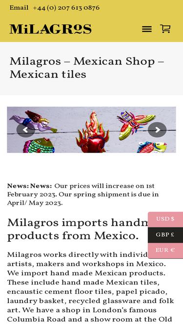 62%Discover beautifully hand made Mexican tiles and unique homeware. Milagros imports handmade ceramics, hand woven baskets, recycled glassware and folk art from makers and artists in Mexico.