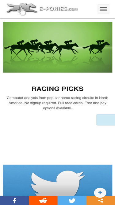 For over twenty years, E-Ponies.com has been providing the best computer-handicapped racing information available on the internet. E-Ponies.com continues to be a leading innovator in the horse racing business