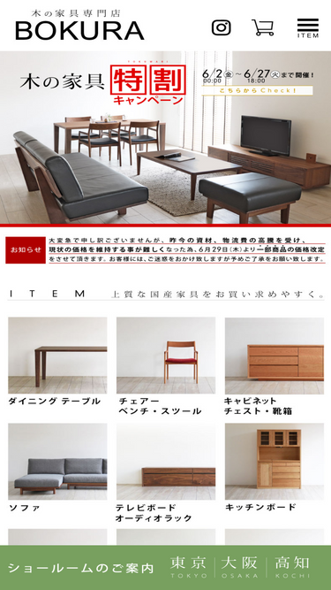 61%国産・日本製の上質な木の家具、テーブル、チェアー、ソファ、収納などを数多く取り揃えております。