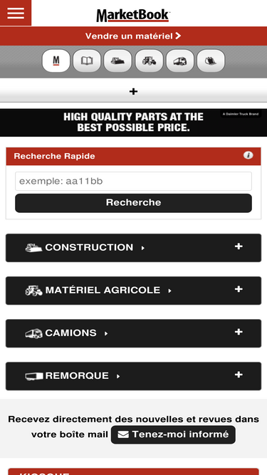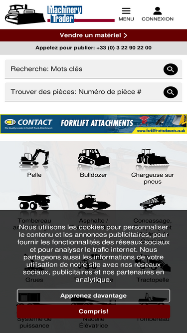 Machinery Trader France est la source de référence pour l'achat et la vente de produits neufs et d'occasion Matériel De Construction. Les acheteurs peuvent trouver une gamme complète de Pelle, Bouteur / Bulldozer, Chargeuse sur pneus, Tombereau articulé / rigide, Asphalte / Finisseur / Béton, Matériel de Concassage, Grues, Télescopique, Tractopelle, Système de puissance, Machine élévatrice, Tombereau, Mini chargeuse, Niveleuse, Forestier, Matériel de Démolition et de Recyclage, Foreuse, Chariot Élévateur, Accessoires, Machines démontées, Pièces et plus encore à Machinery Trader France