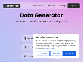 93%Unlock the power of data with RNDGen! Generate standard fake data for free or upgrade to create advanced simulated and synthetic data for testing and analysis.