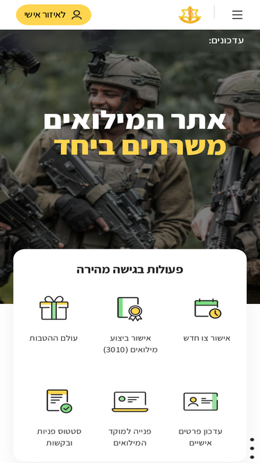 אתר המילואים נועד לתת שירותים דיגיטליים מתקדמים ורלוונטיים למשרתי המילואים בצה"ל