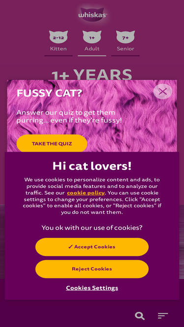 99%Simply sprinkle WHISKAS® Crunch cat food topping on top of WHISKAS® cat food for a taste and texture combination your cat will love. Crunch topping for cat food contains extra vitamins and minerals, meaning every crunchy bite is full of taste and goodness, a great way to keep your cat healthy and happy. WHISKAS® delicious cat food meals and cat treats are formulated for your cat's diet. Treat your cat to a texture combination they will love with this cat food topping. This 100g WHISKAS® crunch is perfect to go on top of your WHISKAS® cat food. A complementary cat food topping for your feline friend