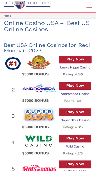 71%Find a list of the 10 best USA online casinos for March 2026. Play for real money at casino sites compared and ranked by US experts. Sign Up and claim up to $10000 in bonuses!