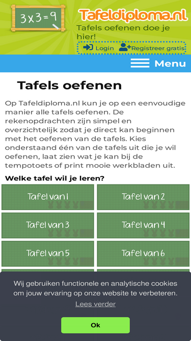 75%Kom hier online alle tafels oefenen. Leer de tafels van 1 t/m 12 met het 5 stappenplan, de tempotoets, tafelspelletjes, werkbladen en haal het tafeldiploma.
