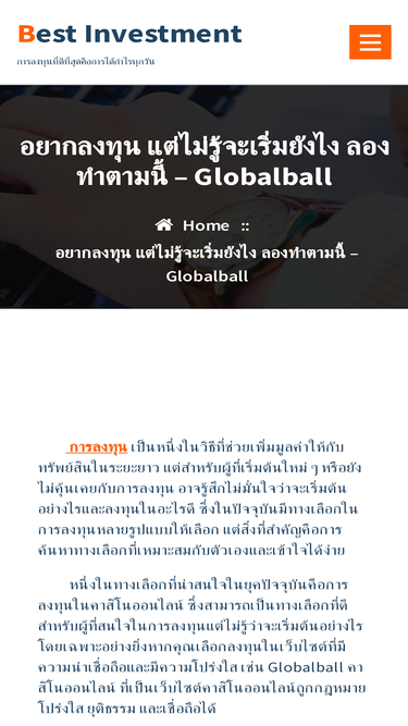 100%อยากลงทุนแต่ไม่รู้จะเริ่มยังไง? ลองเริ่มต้นกับ Globalball คาสิโนออนไลน์ถูกกฎหมาย โปร่งใส ยุติธรรม เชื่อถือได้ การลงทุน เพื่อความยั่งยืน!