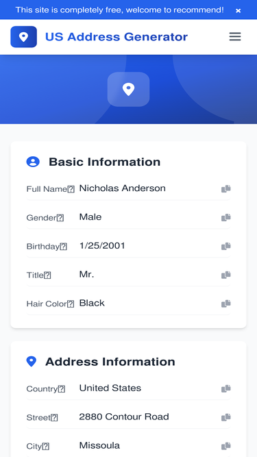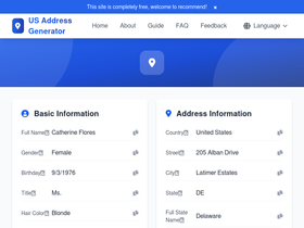 76%US Address Generator, quickly generates real-format US personal identity information, SSN information, address information, email information, employment information, credit card information, etc. Suitable for development, testing, and learning purposes, supporting address generation for all 50 states.