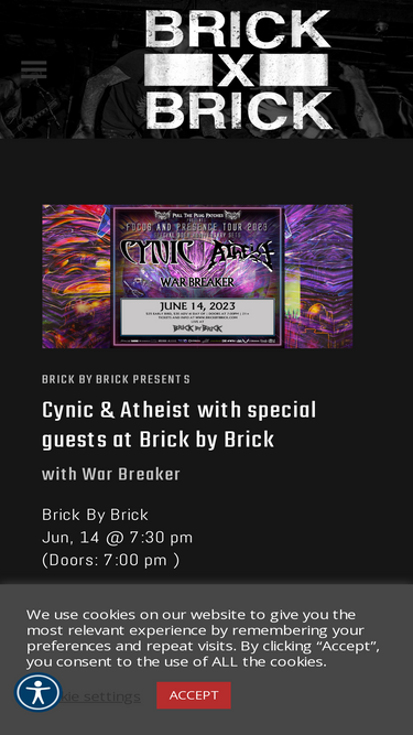 88%San Diego’s home for heavy music – established in 1995 and revived in 2014. Brick by Brick is a 21+ independent live music venue located in Bay Park. FREQUENTLY ASKED QUESTIONS
