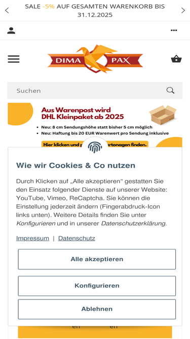 dimapax.de ocupa el cuarto lugar como sitio web más similar a mypack.de y hoffmann-verpackung.de se sitúa en quinta posición en enero 2026.