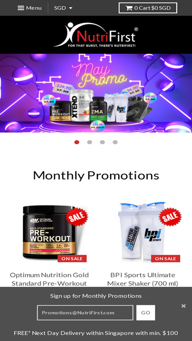NutriFirst Free Customized Consultation on Health Supplement & Sports Nutrition to get Better & Faster Results! Fast Free*Next Day Delivery within Singapore, Ships Worldwide. Renowned Brands like Optimum Nutrition BSN MusclePharm Natrol EVL RSP Cobra Labs Beast Sports NOW Foods GNC Blender Bottle Scivation Muscletech.