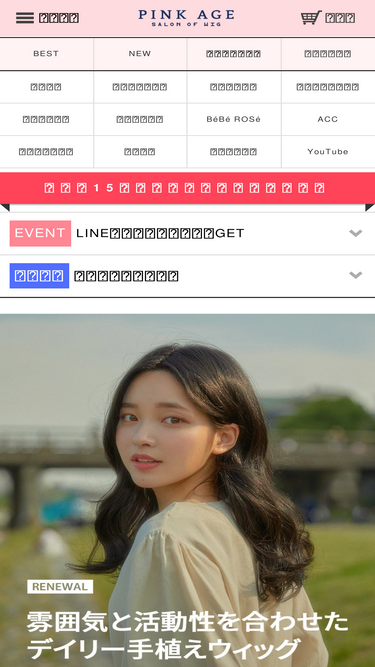 ウィッグ通販ピンクエイジ(pinkage)はファッションウィッグ専門店です。自社直営工場で100%手作り生産!自然で高品質!地毛のような質感でデイリー使用にも最適です。良いアイテムに出会った時のトキメキピンクエイジが その感動をお届けします。ウィッグ、フルウィッグ、ハイカバーピース、随時バン、前髪ウィッグ、スシバンク、ポニーテール、アップスタイル、お団子、筒かつらなどの美容ファッションウィッグランドモール.送料無料配送 pink age(ピンクエイジ)ファッションウィッグ1位ブランド