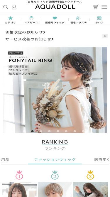 100%ウィッグ通販AQUADOLL(アクアドール)サロン公式ブログです。医療用・ミセス用・オシャレなファッション用ウィッグの新商品情報や、オシャレなアレンジ方法などをご紹介しております。また、お客様からの声も掲載しておりますので、ご参考にご覧ください。サロンは、北海道(札幌)、宮城(仙台)、東京(上野、新宿)、神奈川(横浜)、愛知(名古屋)、大阪(梅田)にございます。