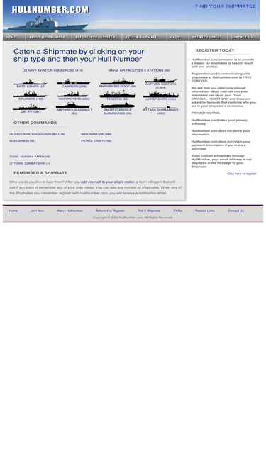 84%personnel rosters for 8700 us navy ships, submarines and air squadrons. includes reunion information, links to command associations and crew contributed photos.