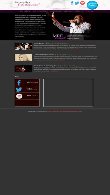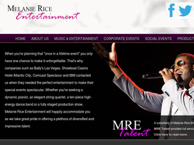 54%melanie rice entertainment is a full service entertainment company featuring top philadelphia dance bands, nj dance bands, de dance bands and ny dance bands, dj's, corporate party bands, jazz bands, classical musicians, novelty entertainers, celebrity headline acts, dancers, party motivators, las vegas style production shows, event planning services and event production.
