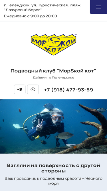 100%подводный клуб морской кот в городе геленджике, краснодарского края, приглашает всех, кому интересен подводный мир, отдохнуть на черноморском побережье и насладиться общением с объектом своего интереса