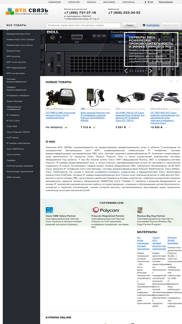 85%ооо втк связь - системный интегратор и поставщик оборудования axis, dell, cisco, polycom. cистемы видеоконференцсвязи, сервера, беспроводные wifi сети, видеонаблюдение, локальные сети