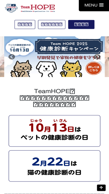 100%Team HOPEはペットの健康診断を推進し、健康管理と予防医療を通じてペットにやさしい社会づくりに貢献していきます。