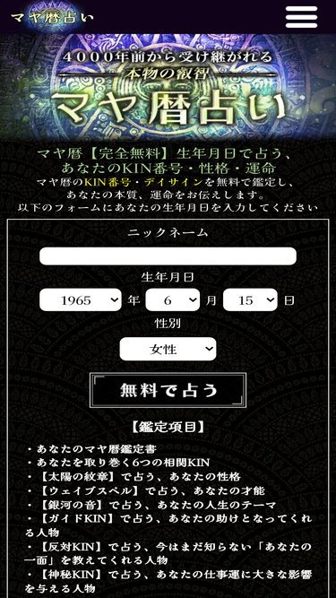 100%【無料占い】日本のマヤ暦研究第一人者「弓玉」の古代マヤ文明から伝わるマヤ暦を用いて、2人の全相性、あの人の気持ち、恋の転機をズバリ鑑定。