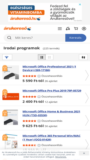 Los otros cinco competidores de la lista de los 10 mejores son store.steampowered.com, operacios-rendszer.arukereso.hu, szoftver24.hu, irodai-programok.arukereso.hu y hardverapro.hu.