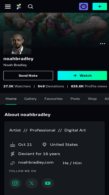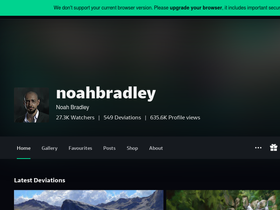 Según los datos de visitas mensuales de Similarweb, el principal competidor de noahbradley.com en febrero 2026 es noahbradley.deviantart.com. El segundo sitio más similar a noahbradley.com es thesinofman.com, y completando el podio se encuentra bugmeyer.squarespace.com.