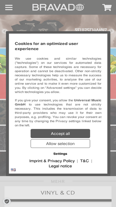 79%Bei Bravado findest du die neuesten Vinyls & CDs von deinen Lieblingskünstlern. Starte jetzt deine Entdeckungstour im Bravado Onlineshop!