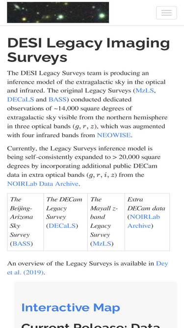 DESI Legacy Imaging Surveys The DESI Legacy Surveys team is producing an inference model of the extragalactic sky in the optical and infrared. The original Legacy Surveys (MzLS, DECaLS and BASS) condu