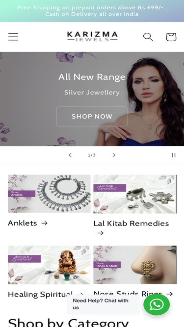66%Karizma Jewels provides jewelry in high quality silver grade. Ethnic traditional collection of Jewelry anklets, chains, bangles and nose rings is available. we provide real gemstones, crystals and red book remedy items online with fast shipping all across India.