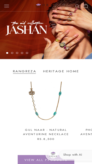 Q: What types of jewelry does Orah Jewels and Crafts offer? A: Orah Jewels and Crafts offers a wide range of exquisite jewelry including earrings, necklaces, bracelets, rings, pendants, tasbihs and home décor products Q: What materials are used in Orah Jewels and Crafts' jewelry? A: Orah Jewels and Crafts' jewelry is