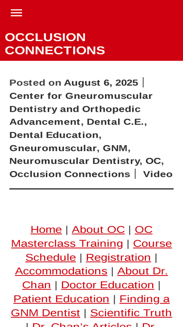 100%Home | About OC | OC Masterclass Training | Course Schedule | Registration | Accommodations | About Dr. Chan | Doctor Education | Patient Education | Finding a GNM Dentist | Scientific Truth | Dr. …