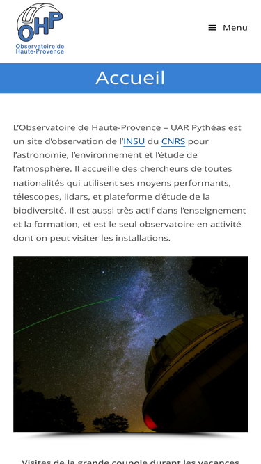 99%observatoire de haute-provence is an astronomical observatory located in south-east france offering mid-sized telescopes (1.93m, 1.52m, 1.20m) both to the french and the international communities