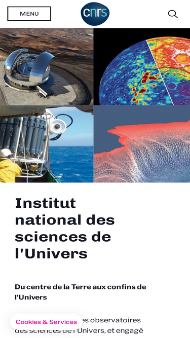 86%l'institut national des sciences de l'univers (insu) du cnrs a pour mission d'élaborer, développer et coordonner les recherches d'ampleur nationale et internationale en astronomie, sciences de la terre, de l'océan, de l'atmosphère et de l'espace.