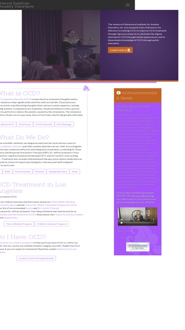89%Westwood Institute for Anxiety Disorders is a premiere treatment center for OCD. The institute trains clinicians to treat OCD, improves practice through rigorous research, works to eliminate the stigma attached to OCD, and disseminates knowledge of OCD through public education.