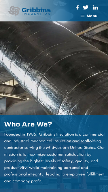 74%Gribbins is a commercial and industrial mechanical insulation and scaffolding contractor serving the Midwestern United States.