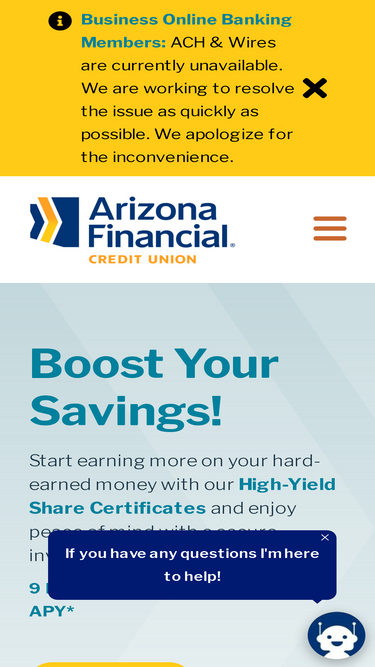 78%Contacting Arizona Financial is easy by phone, secure email, or secure chat! Mobile and online banking offer you 24/7 access to your account information.