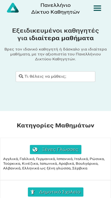 79%Πληροφορίες εγγραφής στο Πανελλήνιο Δίκτυο Καθηγητών. Βρες μαθητές για ιδιαίτερα μαθήματα στην περιοχή σου ή για online μαθήματα.