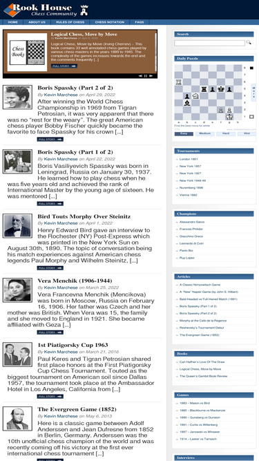 99%What exactly is Rookhouse.com? How can I learn to play chess? Where can I play chess online? What does this strange notation like "17.Rac1 Rxc1+" mean? Why do games end even though nobody is checkmated? What is PGN? How can I flip the board on the tournament pages, so that Black is on the bottom?