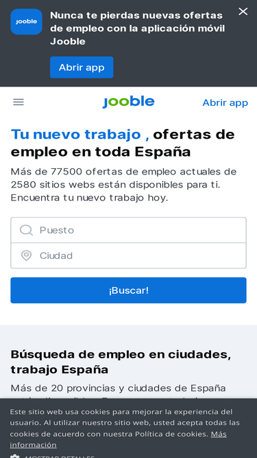 75%busca entre millones de empleos y consigue información de primera mano sobre las empresas gracias a las opiniones de los empleados, las herramientas personalizadas para calcular tu sueldo y más. ¿necesitas personal? publica una oferta de empleo gratis.