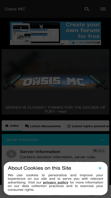 77%Oasis SMP SERVER IS CLOSED!! THANKS FOR THE DECADE OF FUN!! ~mad