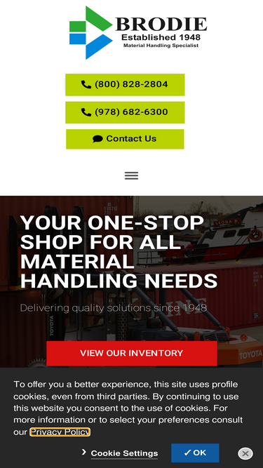 99%Brodie Toyota-Lift is an exclusive Toyota forklift dealer in Eastern New England servicing Shrewsbury, Sharon and Lawrence, MA. We offer material handling and industrial equipment sales, parts and service. We also offer warehouse solutions.