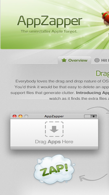 100%Introducing AppZapper. Simply drag one or more apps onto AppZapper. Then, watch as it finds the extra files and lets you delete them with one click.