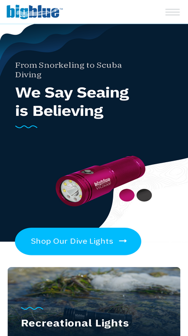 89%Bigblue Dive Lights offers affordable, advanced underwater LED dive lights, ranging from simple recreational lights to underwater illumination systems.