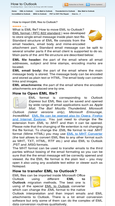 82%known methods of eml to outlook transfer. free and commercial tools, manual methods and other information.